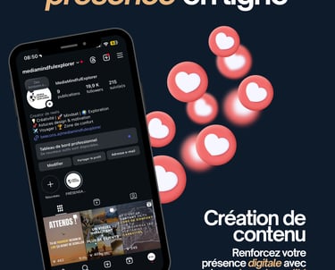 Je vous accompagne à travers trois packs d'univers complémentaires : La communication digitale (création de site internet) et la création visuelle (réseaux sociaux) et l'audiovisuel.